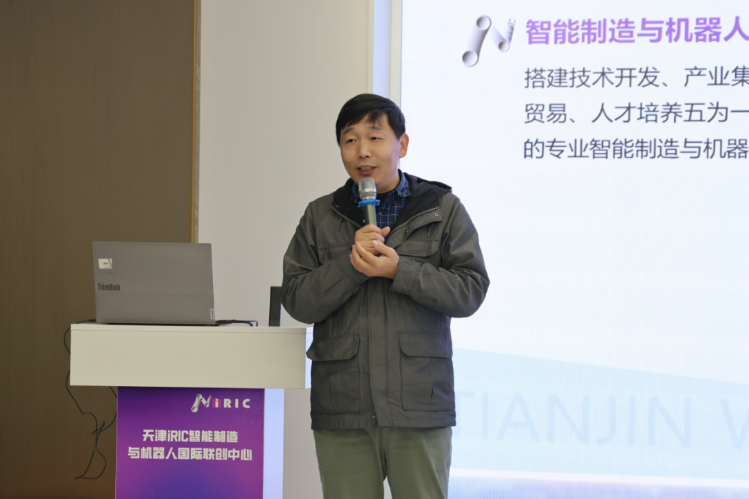 天津iRIC董事长袁建军介绍了天津iRIC的建设情况和未来规划,他表示,天津iRIC致力于搭建技术开发、产业集聚、科技服务、投资贸易、人才培养五位一体的产业投资等职能的专业智能制造与机器人科创服务平台,深度激活区域产业势能,全力推动智能制造及机器人产业集群发展。希望此次对接交流会能够碰撞出合作的火花,为培育“具身智能”这一国家未来产业注入强劲动能。