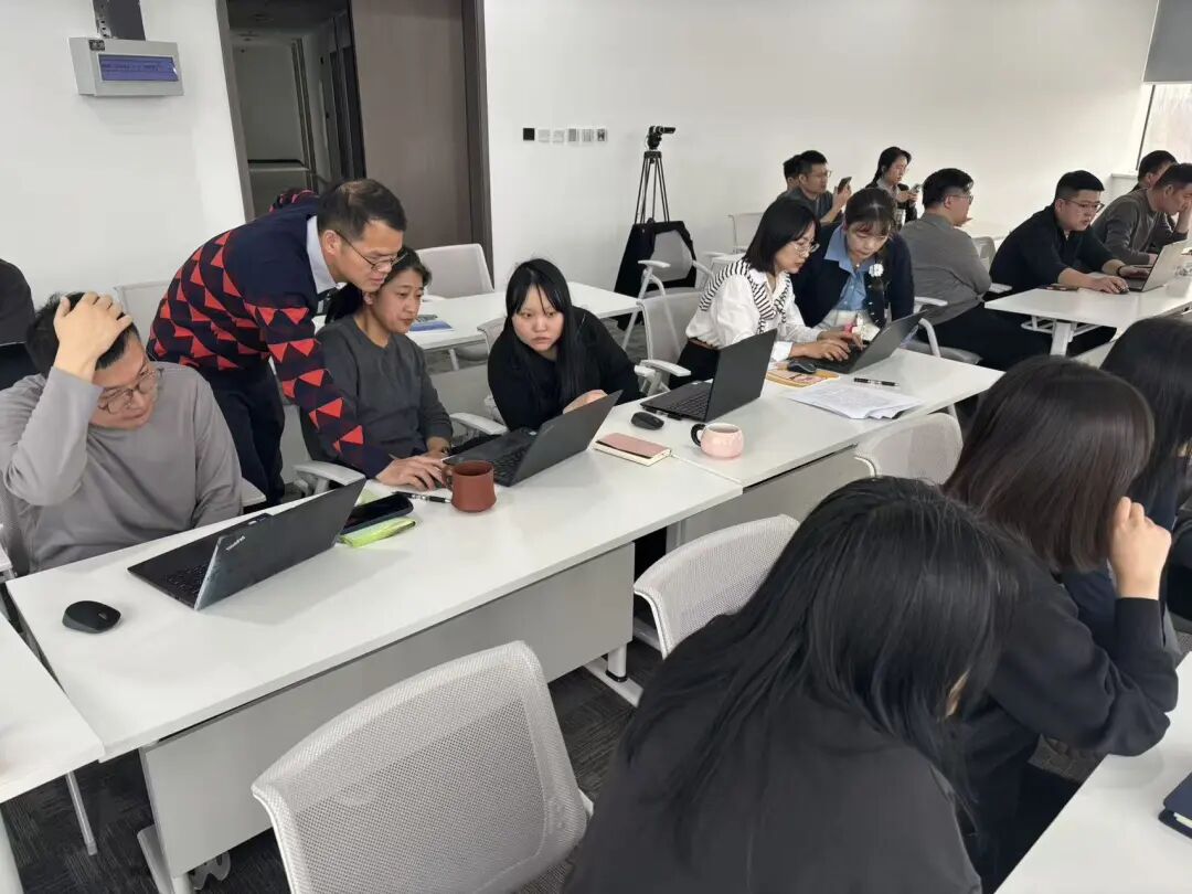 在“人机共创案例式工作坊”环节,学员以小组形式围绕实际业务场景展开深度研讨与智能体开发实践。各小组通过成果展示、互动交流及导师专业点评,实现了知识内化与经验共享,有效提升了技术应用和场景迁移能力。