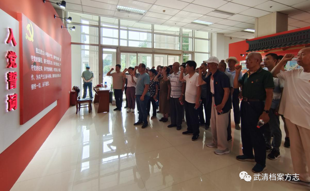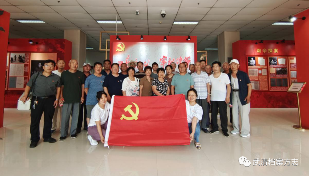 烈日炎炎,老党员们热情丝毫不减,在引导员的带领下,怀着崇敬的心情,走进了档案馆红色展厅。首先在“一肩挑”黄建军书记的带领下重温入党誓词,老党员们面对宣誓墙庄严宣誓。随后参观了“不忘初心、牢记使命”档案文献展和武清历史沿革展。讲解员声情并茂地讲述了中国共产党从建党之初对马克思主义的理论探索到带领中国人民实现了从站起来、富起来到强起来的伟大飞跃的百年奋斗历程,老党员们眼含泪花,仿佛又穿越到那段艰苦岁月。在武清历史档案展厅,老党员们表现出浓厚的兴趣,讲解员详细介绍了武清的历史沿革以及近年来武清的发展成就,大家纷纷表示,这些老照片都是时代的印记,作为亲历者,老党员们感慨万千,他们为近年来武清区的快速发展和日新月异感到骄傲和喜悦,也对武清的未来充满信心。